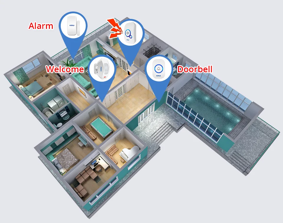 This smart wireless doorbell adopts advanced wireless transceiver technology, high-quality voice processing technology, up to 32 music, and its performance is stable and reliable. Doorbell, anti-theft, welcome multi-purpose. Suitable for home, villa, shop, hotel,and office etc.