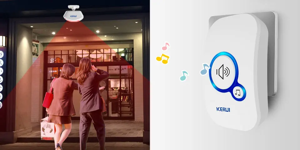 When the infrared sensor detects a moving object it will send a signal to the doorbell, the doorbell emits a welcome sound.