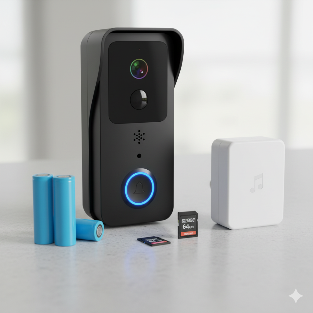 L’installation sans fil est rapide et accessible à tous. Cette sonnette peut être alimentée par piles rechargeables 18650, USB ou alimentation AC/DC 12V. Un carillon optionnel est également disponible pour compléter votre installation et entendre la sonnette dans toute la maison.